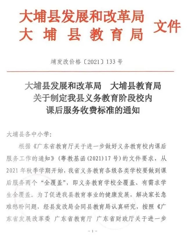 大埔中小学课后服务收费标准公布